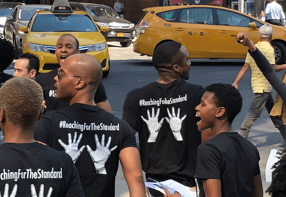 The gathering's purpose was to increase visibility, and as AGMA national executive director Len Egert stated, to ask supporters to call Ailey's executive director Bennett Rink to encourage fair contracts for these beloved artists.